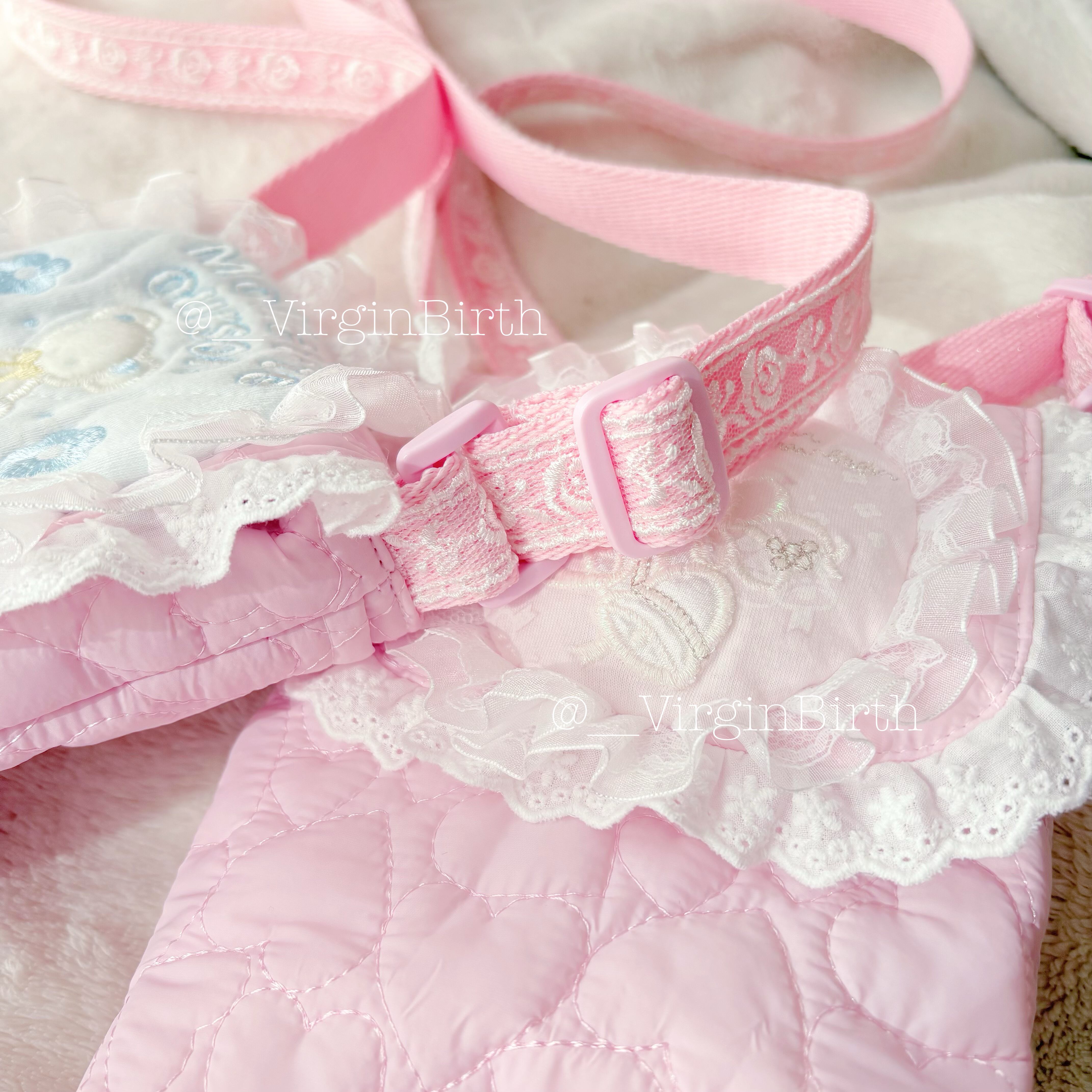 ショルダーベルトはレーステープを縫い付けています。便利な調節可能タイプ♡